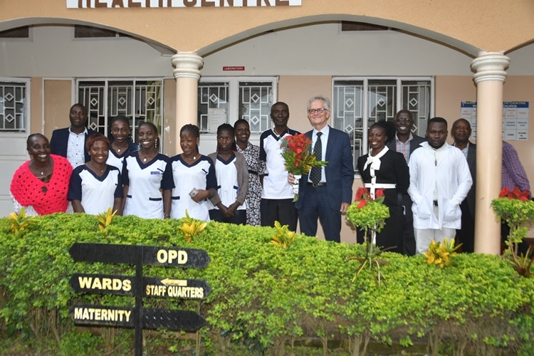 Anschließend ging es zu einem Besuch im Haide-Helmut-Health-Centre in Bbaala. Ein längerer Regenschauer brachte unserem Team dann die Gelegenheit, ihn in unsrem Kinderhaus in Kamukongo zu bewirten und ihm viele Informationen über unser Projekt zukommen zu lassen. Aus einem Dankesbrief an Emmanuel und Goretti nach seinem Besuch geht hervor, dass er sehr beeindruckt von der Arbeit im gesamten Projekt ist.
